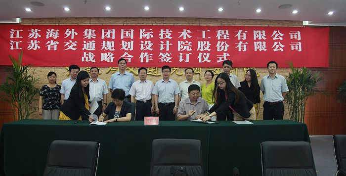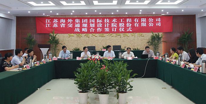 ??????? 9月2日下午,江蘇海外集團國際技術工程有限公司與江蘇省交通規劃設計院股份有限公司舉行戰略合作簽訂儀式,海企技術公司林敏總經理和省交通規劃設計院楊衛東院長分別代表合作雙方在協議上簽字。江蘇省交通廳梅正榮副廳長、江蘇省地方海事局方建華局長、海企集團楊大偉董事長、黃宏亮總裁、朱大榮副書記等領導出席了雙方的簽訂儀式。