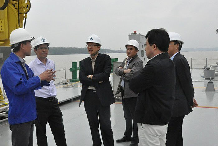 ????????史先召總經理帶領的海企倉儲班子成員首先參觀了已于9月26日建成并投入試運行的【海港星01號】水上LNG加注站,對技術公司在全國率先建成如此高水準的加注站表示祝賀。隨后,兩個公司的領導班子在會議室就群眾路線教育實踐活動,結合各自的實際情況進行了深入的交流學習。