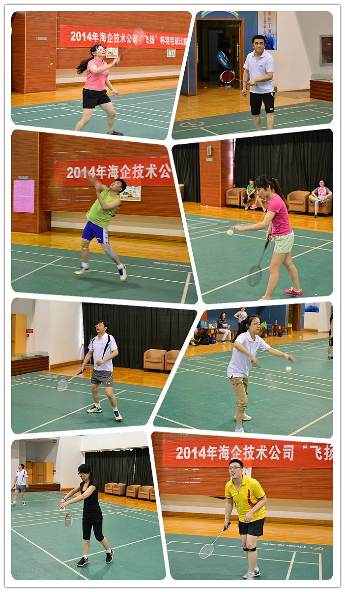 ????????5月16日下午13:30,2014年海企技術(shù)公司“飛揚”杯羽毛球比賽在中山東路全民健身中心順利舉辦。比賽共分四個項目:男單、女單、單雙、女雙,每個項目分冠、亞、季共12個獎項。公司員工積極參與,共有60人次報名參賽,總計進(jìn)行了一百多場比賽。從小組循環(huán)賽到淘汰賽到最后的總決賽,參賽者們各個勁頭十足、活力四射。我司以幾位部門經(jīng)理及副總為代表的種子選手,其高超的球技贏得滿堂喝彩,為整場比賽營造了輕松、歡樂的氣氛。比賽期間所有選手克服了體力嚴(yán)重透支的不利狀況,與強手過招,一路過關(guān)斬將,充分發(fā)揚了我司員工頑強拼搏、堅持到底的精神風(fēng)貌。