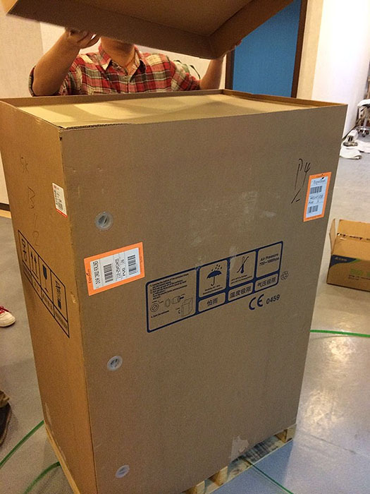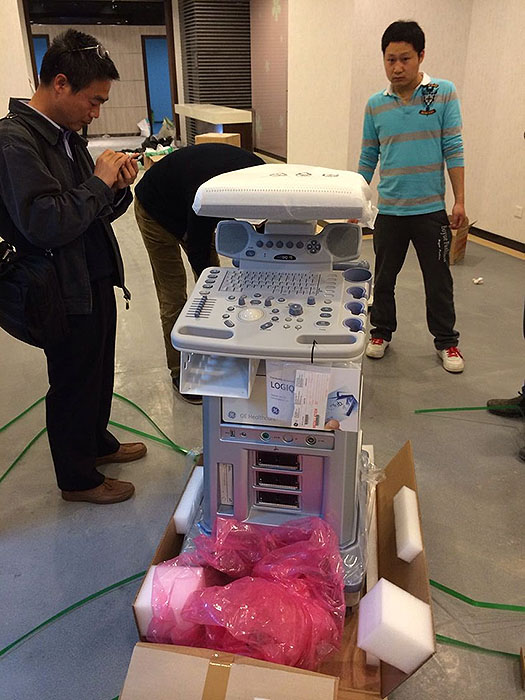 ????????上海商檢局領導不辭辛苦,與我部劉立、彩超供應商的工程師、上海瑞慈的各位負責人等一起對每一包貨物都仔細進行檢查與校對,確認每一包貨物都沒有問題,對包裝上、機器上的數據數字規格明細與其提供的說明書進行詳細的中英文比對,確保單單相符。最后商檢局領導還對以后的商檢形式提出改進的方案與電子化的提議。