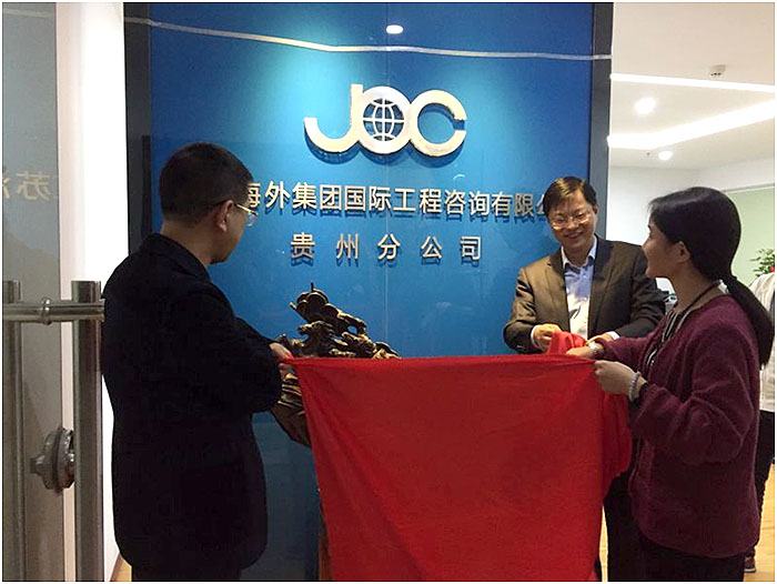 ????????2015年10月9日,江蘇海外集團國際工程咨詢有限公司貴州分公司在貴陽成立,這是海企“走出去”戰略的又一個里程碑,也是公司董事長林敏本地化發展思路的綜合體現。公司副總經理周兵,貴州分公司負責人陳剛、郭秀華共同參與了分公司的揭牌儀式,并與分公司全體員工合影留念。