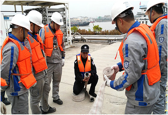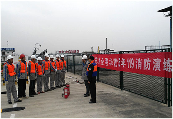 ????????為提高全員消防意識,增強員工在緊急情況下的應變能力,自我防護能力,海企港華2015年119消防綜合演練于11月12日上午9點30分在LNG水上加注站舉行,并邀請到長航消防公安支隊朱所長和八卦洲街道安監科陳科長等到場觀摩和指導。