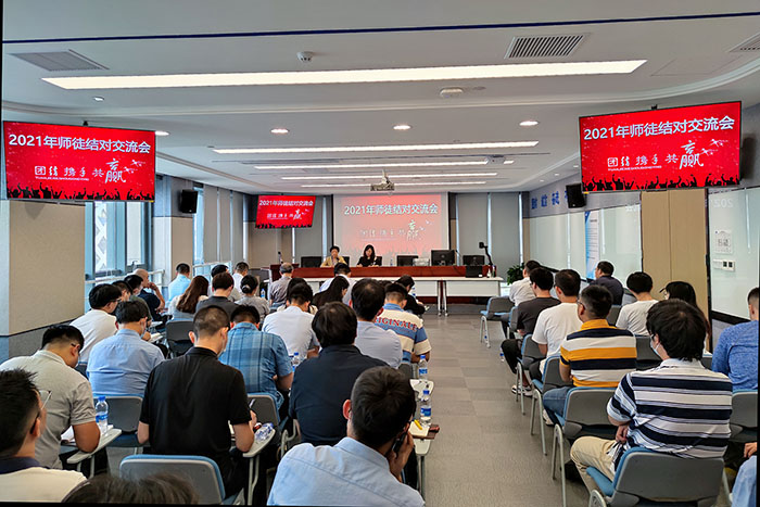 ????????近年來(lái),江蘇海外集團(tuán)國(guó)際技術(shù)工程有限公司(以下簡(jiǎn)稱公司)一直關(guān)注青年員工的成長(zhǎng)與培養(yǎng),采取了諸多有力舉措,“師徒結(jié)對(duì)”活動(dòng)就是其中之一。2021年8月19日下午,公司2021上半年度“師徒結(jié)對(duì)”效果匯報(bào)交流會(huì)在14樓開(kāi)標(biāo)一廳舉行。會(huì)議由綜合辦公室主任王海婷主持,公司領(lǐng)導(dǎo)班子到會(huì)講話,各業(yè)務(wù)部門(mén)負(fù)責(zé)人參加,結(jié)對(duì)的全體“師傅”和“徒弟”近70人與會(huì)。