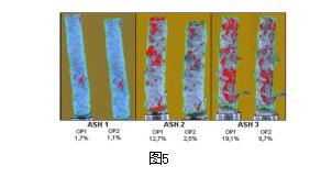 2.2細支煙燃燒包灰檢測技術及工藝改進1)細支煙燃燒包灰檢測 細支煙在人們眼中是一種時尚也是一種品位,細支煙通常是和咖啡,音樂和時尚休閑等詞匯聯系在一起,但是在細支煙抽吸的過程中,如果產生嚴重的包灰散落現象,必然會引起消費者的不滿,韓國KT&G煙草人參公社基于客戶的市場投訴,將細支煙的燃燒包灰作為一項日常檢測指標,并對相關工藝和材料進行不斷的改進。根據筆者的調研,目前國內還沒有相關卷煙燃燒包灰的檢測標準和評判體系,湖北中煙的程占剛和福建中煙的王道寬分別用自制的儀器對卷煙包灰性能的影響因素作了相關研究[6][7],國內目前對于卷煙的包灰檢測分析僅存在于研究階段,并沒有出臺完整的標準化檢測指標。韓國KT&G煙草人參公社自行研發的5通道卷煙包灰完整性分析測試儀,自帶抽吸裝置,可以模擬動態和靜態灰柱。并自帶視頻系統和圖像分析軟件,對包灰的性能進行數據化指標計算,形成了一套完整的評測體系。如圖5。