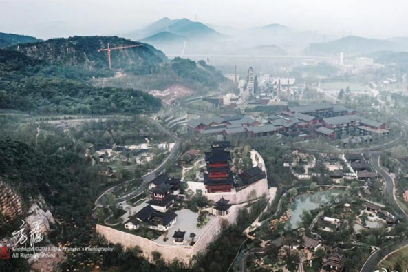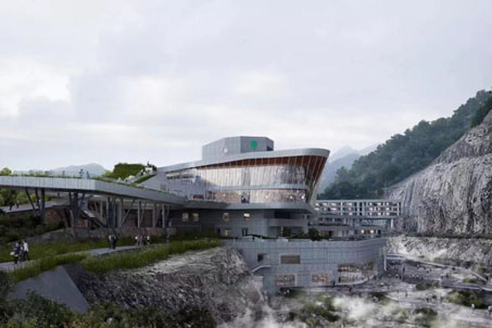 ????????位于湯山之中孔山片區(qū)的未來花園項(xiàng)目,是本次學(xué)習(xí)的主要現(xiàn)場,原本是一座采石場,整個(gè)項(xiàng)目傍山而建,其中的崖壁劇院,則利用了早年礦山開鑿留下的山體切割面,形成了一個(gè)巨大的屏幕,用于作為重要演出中投影的背景幕布。